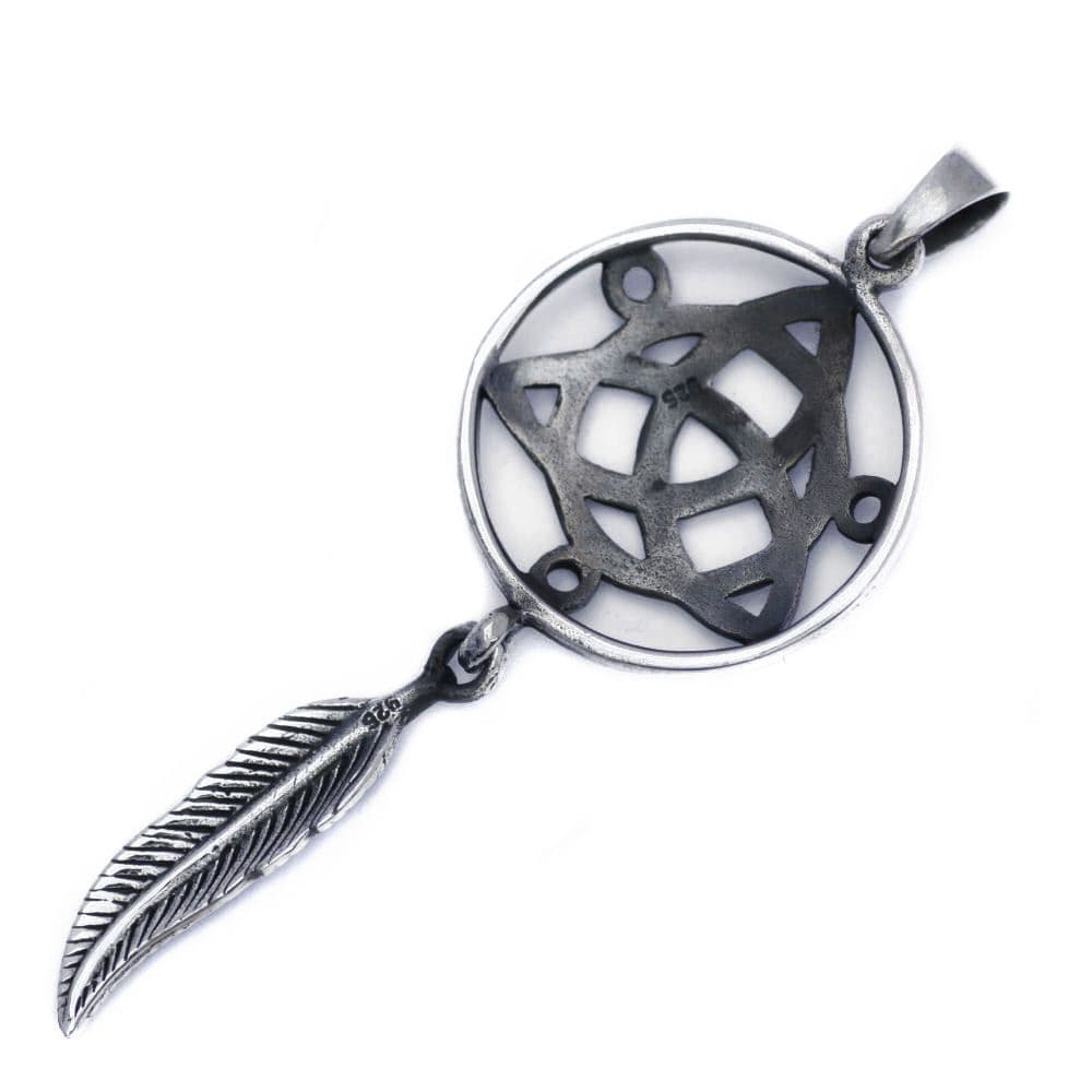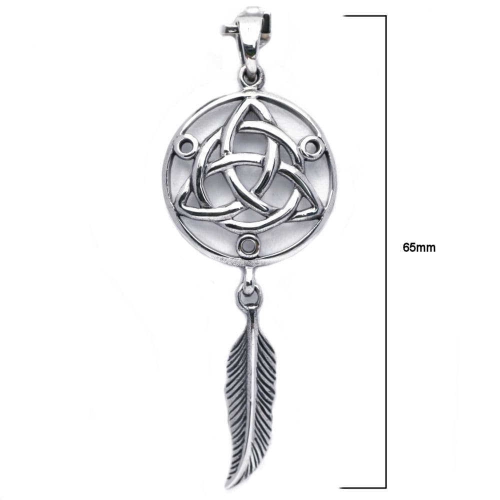 Solid Sterling Silver Large Triquetra Trinity Dreamcatcher Feather Pendant P020